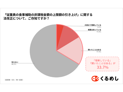 国内最大級の法人向けフードデリバリーサービス「くるめし弁当」を運営する株式会社くるめし(本社:東京都渋谷区、代表取締役:小林 篤昌)は、運営サービス「くるめし弁当」および「シェフコレ」の会員を対象に「第3の賃上げ」に関するアンケートを実施しました。2026年4月1日(水)に施行されました「食事の現物支給に係る所得税の非課税限度額の引上げ*」に関する認知度や社内での関連施策の実施状況に関する調査結果としてお知らせします。