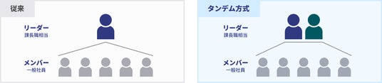 今回試験導入した「タンデム方式」とは、1つの職務を複数名で分担して遂行する働き方で、ドイツを中心に普及しているジョブシェアリングの手法です。当社では、チームのマネジメントを行うリーダーの役割を2名体制としました。これにより、業務負荷の分散とそれぞれの専門性をさらに高めていくことを目的としています。現在は、全20チーム中4チームにおいてこの体制を導入しました。本取り組みを通じて各人の強みを活かしたチームづくり、さらには全社のパフォーマンスと業務効率の向上を図ります。