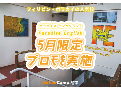 ネイティブスピーカーと回数無制限のオンライン英会話サービス「ネイティブキャンプ英会話」を展開する株式会社ネイティブキャンプ(東京都渋谷区 代表取締役:谷川国洋)は、海外留学エージェントサービス「ネイティブキャンプ留学」において、フィリピン・ボラカイの語学学校Paradise Englishにて、5月限定プロモを実施いたします。