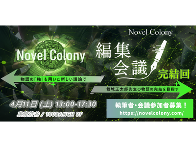 これからの時代を担う若い世代とともに新しい価値の創造に取り組む未来創造拠点「100BANCH」。その99期生として採択された物語共創プロジェクト「Novel Colony(ノベルコロニー)」が、「立場の違いを超え、誰もが楽しめる」物語の共創の集大成となる「編集会議 完結回(第4回)」を2026年4月11日(土)に渋谷100BANCHで開催します。Novel Colonyは、物語の冒頭に続く話を複数の人が持ち寄った上で議論と投票を行い、一つの正統な続編を選ぶ、リレー小説とオーディションを組み合わせた新しい手法のプロジェクトです。評価基準「軸」を用いた議論手法や、過去の議論を学習したAIを活用し、新たな合意形成のプロセスを体験いただけます。4月11日は、小説家の舞城王太郎氏が特別に書き下ろした冒頭3作品に対して参加者と共に紡いできた物語の完結を目指します。現在、執筆者および参加者を募集しています。