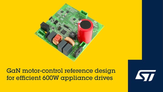 STマイクロエレクトロニクス(NYSE:STM、以下ST)は、生活家電や産業用ドライバをヒートシンク無しに600W以上の電力で駆動できる、GaN(窒化ガリウム)モータ制御用リファレンス設計ボード「
