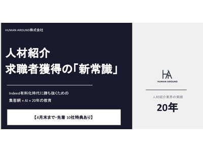 採用支援20年・支援実績3,000社以上のヒューマンアラウンド株式会社が、中小人材紹介会社の「集客難・育成難・孤独」を一括解決するサービスを4月より展開。先着10社限定キャンペーン実施中。