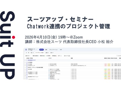株式会社スーツ(所在地:東京都千代田区、代表取締役社長CEO:小松 裕介)は、2026年4月10日(金)19時から、当社代表の小松が講師を務めるスーツアップ・セミナー「Chatwork連携のプロジェクト管理」を無料開催します。