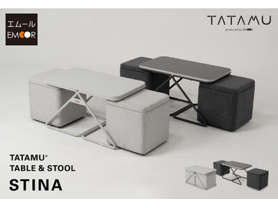 トランスフォーム家具ブランドTATAMU(R)から、“しまう・座る・集まる”を一台で叶えるテーブル&スツール『STINA(スティナ)』が新発売。ホームユースだけでなくオフィスや店舗でもオススメです。