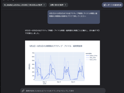 Insight Agentは、専門知識を要せずチャット形式で指示するだけで、生成AIを用いてログを解析し、数値根拠に基づく業務分析やレポート作成、課題の深掘りを行います。例えば、複数システムへの同一データの重複入力といった非効率な作業を検出した場合には、データを根拠に「業務プロセスの自動化」や「入力フォームの統合」といった具体的な改善策を提案します。PCの操作ログは、検索拡張生成(RAG※2)技術を通じて業務改善に関するナレッジを収集することで、提案の信頼性を保ちます。