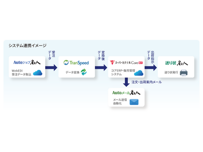 まず、ワークショップやホームセンターの各種WebEDIから受ける注文データ処理を、「Autoジョブ名人」と「TranSpeed」で自動化。基幹システム「スーパーカクテルCore」と連携し、仕分けリストやピッキング予定データ、入荷予定データの作成を効率化したことで、出荷までのリードタイム削減につながっています。