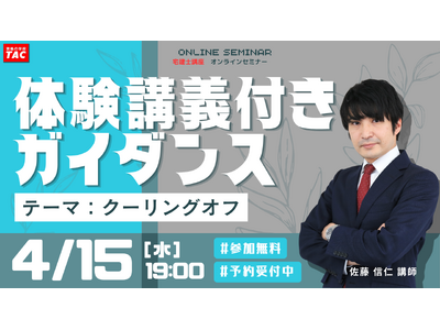 宅建士試験対策講座を展開しているTAC株式会社(東京都千代田区)は、4/15(水)19:00より宅建試験に説明する無料オンラインセミナーを開催します。