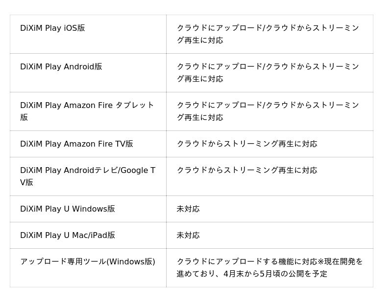 ●アプリDiXiM PlayのDiXiM U Cloud対応状況について