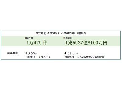 株式会社帝国データバンクは、2025年度の企業倒産件数(負債1000万円以上の法的整理が対象)について集計し、分析を行った。