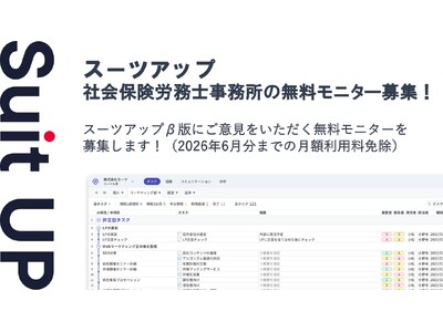 株式会社スーツ(所在地:東京都千代田区、代表取締役社長CEO:小松 裕介)は、AIでかんたん、チームのタスク管理・プロジェクト管理ツール「スーツアップ」において、社会保険労務士事務所の無料モニターを募集いたします。
