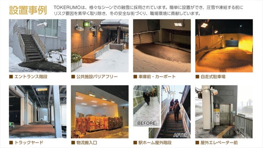 遠赤外線融雪装置「TOKERUMO(解けルモ)」は、2010年より開発を開始。年間降雪日数が平均123日、年間積雪量約4mと、1年の約3分の1を雪と向き合う厳しい環境である札幌の地において、現場ニーズを起点とした開発を進め、現場での課題抽出と検証を繰り返す“トライアンドエラー型の開発”を通じて、遠赤外線による直接作用型の融雪方式を確立。さらに2021年には、従来のハロゲンランプから、より耐久性・省エネ性・効率性に優れたカーボンランプへと改良を実施し、今回のNETIS登録に至りました。