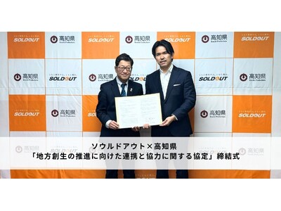地方を含む全国の志ある中堅・中小企業の成長支援をデジタルマーケティング領域で展開するソウルドアウト株式会社(本社:東京都文京区 代表取締役社長CEO兼CCO:北川 共史、以下「ソウルドアウト」)は、高知県(知事:濱田 省司)と「高知県の地方創生の推進に向けた連携と協力に関する協定書」を締結し、4月8日に高知県庁にて締結式を執り行いました。