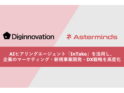 AIを活用した戦略策定・事業開発・マーケティングを推進・伴走するプロフェッショナルファームであるデジノベーション株式会社(本社:東京都杉並区、代表取締役社長:伊藤 友博、以下「デジノベーション」)と、AIヒアリングエージェント「InTake」を開発・提供するAsterminds株式会社(本社:東京都港区、代表取締役:本多 真二郎、以下「Asterminds」)は、カスタマーリサーチおよびコンサルティング領域における業務提携を開始したことをお知らせいたします。本提携により、「InTake」の活用範囲がカスタマーリサーチ・マーケティングリサーチへと拡大します。