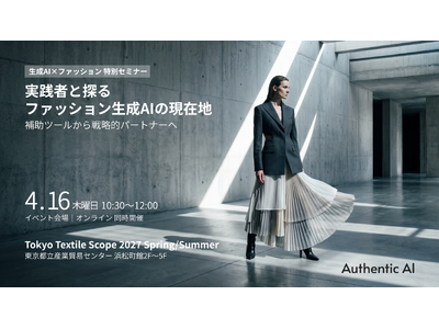 ファッションと生成AIをはじめとした最新テクノロジーを掛け合わせたソリューションを展開する株式会社オーセンティックAI(本社:東京都港区、代表取締役:上田 徹、以下オーセンティックAI社)は、2026年4月15日(水)~17日(金)に開催されるファッション展示会「第3回 Tokyo Textile Scope」の 2日目、4月16日(木)に特別セミナーを実施することをお知らせします。