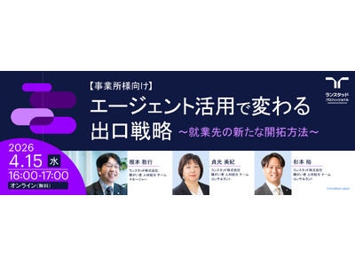 総合人材サービスを提供するランスタッド株式会社(本社:東京都千代田区 代表取締役会長兼CEO 道上 淳之介、代表取締役社長 猿谷 哲)は、2026年4月15日に就労移行支援事業所様向けの無料ウェビナーを開催いたします。2026年7月の法定雇用率引き上げ(2.7%)を目前に控え、企業が求める人材像の変化と、支援機関に求められる新たな役割について、最新の市場動向を交えて解説します。ランスタッドは自社の障がい者雇用を着実に促進することに加え、企業への障がい者人材の紹介事業も強化しており、今後も社会課題解決に貢献してまいります。