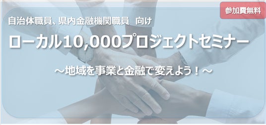 10,000プロジェクトセミナー」を開催いたします。本セミナーは、当行が自治体および岡山県内に本店を置く金融機関と連携し、地域が一体となって地域課題の解決を図ることを目的としています。 制度の概要説明や「ローカル10,000プロジェクト」を活用した具体的な事例紹介を通じて、制度への理解を深める内容となっています。