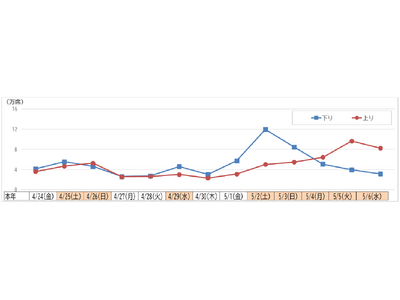 ・下りのピーク日は5月2日(土)で、約12万席のご予約をいただいております。