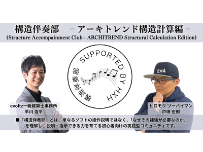 evoltz一級建築士事務所(管理建築士:早川浩平)と構造設計事務所のヒロモク(代表:戸鳴宏樹)は、木造住宅の構造計算に携わる設計者を対象とした、オンライン実践型コミュニティ**『構造伴奏部 ーアーキトレンド構造計算編ー』**を2026年4月より開始いたします。
