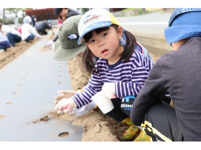 体験会は、枝豆とトウモロコシを育てる「まめまめコース」の初回です。7月の収穫を目指し、利用者家族約90人が枝豆とトウモロコシの種をまきます。ネット掛けや畑の畝をシートで被うマルチ張り、発芽して成長したジャガイモの芽を間引く「芽欠き」作業も行います。良質な食物を育てるために必要な工程を体験することで、子どもたちへの食育につなげます。