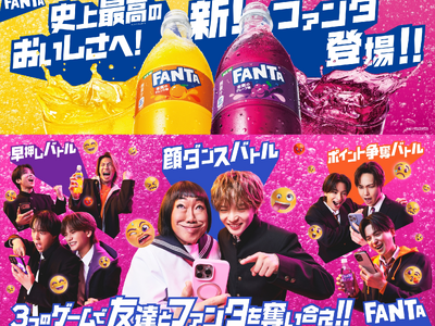コカ・コーラシステムは、フルーツフレーバー炭酸カテゴリー「ファンタ」ブランドより、リニューアルした「ファンタ グレープ」「ファンタ オレンジ」を、2026年4月13日(月)より全国で発売します。ザ コカ・コーラ カンパニーの開発手法であるAI技術が日本のコカ・コーラ社製品で初めて導入され、これまで以上にフルーティーな味わいで、思わず気分が弾むような爽快な味わいへとリニューアルしました。さらに、新しくなった「ファンタ」のおいしさと楽しさを体感できるデジタルキャンペーンや「ファンタ学園」シリーズの新CMも同日より一斉スタートし、「ファンタ」のワクワクする世界観をお届けします。