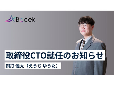 株式会社Bocek(本社:東京都港区、代表取締役CEO:沖村 昂志)は、新たに餌打 優太を取締役CTOとして選任したことをお知らせします。
