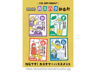 気づかぬうちに行ってしまうカスハラを、かるたのイラストで表現し、ご覧の方に気づいていただけるようなメッセージを掲載しております。