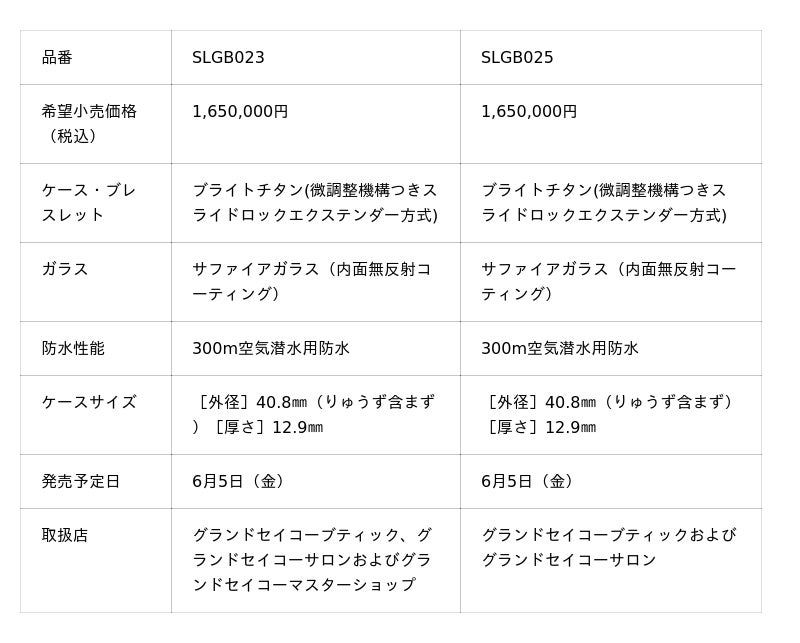 セイコーウオッチ株式会社(代表取締役会長 兼 CEO 兼 CCO:服部 真二、本社:東京都中央区)は、<グランドセイコー>エボリューション9 コレクションより、年差±20秒の高精度とグランドセイコーのダイバーズウオッチで最小となる40.8mmのケース径を実現した「Ushio 300 Diver」を発売いたします。いずれも6月5日(金)発売予定、希望小売価格は1,650,000円(税込)です。