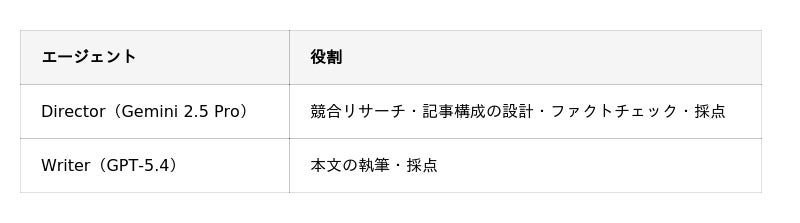 ※内部ではさらに細かく役割が分かれ、それぞれのセクションに適したエージェントが動いています。