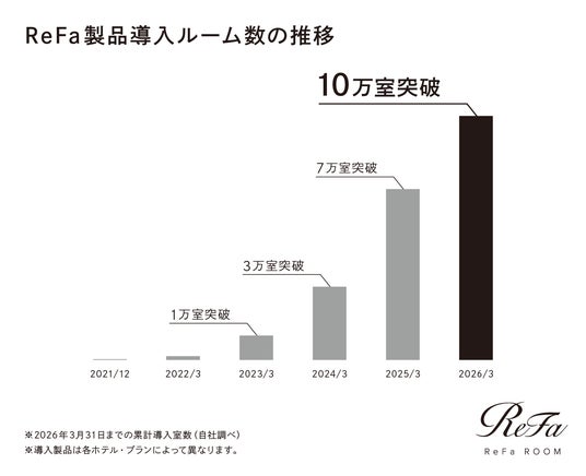 ※ 110,000室(2026年3月31日時点までのReFa製品累計導入室数)