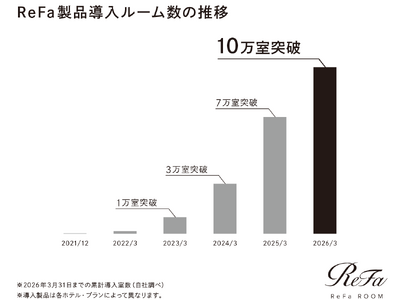 株式会社MTG(本社:愛知県名古屋市、代表取締役社長:松下剛)が展開する美容ブランド『ReFa(リファ)』の製品を導入した宿泊施設の客室が、累計10万室を突破※しました。「ReFaルーム」は2021年のサービス開始以降、旅先でも上質な美容体験を楽しめる客室として、ラグジュアリーホテルや高級旅館を中心に採用が広がり、都市部のビジネスホテルや地方の宿泊施設にも展開を拡大しています。