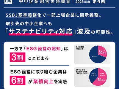 サステナビリティ開示基準(SSBJ基準)の策定が進み、上場企業に対してサプライチェーン全体での情報開示が義務化される中、中小企業にとってもESG経営への対応は取引条件や競争力を左右する極めて重要な経営課題となりつつあります。今回の調査では、こうした「外圧」を背景にしながらも、先行して取り組む企業が「業績向上」に加え、組織の内的成長である「社内評価の向上」を最も強く実感している実態が浮き彫りとなりました。