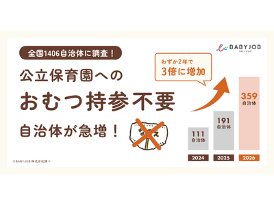 保育施設向け紙おむつとおしりふきのサブスク「手ぶら登園」など、子育て支援サービスを展開するBABY JOB株式会社(本社:大阪府大阪市、代表取締役 上野公嗣)は、全国の公立保育施設がある1,406の市区町村の保育課を対象に、「第3回 おむつ持参に関する全国調査」を実施いたしました。