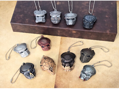 「プレデター」は、映画「プレデター」シリーズ、および「エイリアンVSプレデター」シリーズに登場する異星人で、個体ごとに異なる特徴的な“マスク”がシンボリックな地球外生命体です。「プレデター」関連の映画シリーズは現在8作にのぼり、今回はその中の7作品に登場するそれぞれの“マスク”が一堂に会したボールチェーン付のミニチュアマスコットをガチャで発売いたします。“マスク”の大きさは高さ約50mmとなっており、物理的なボリュームのみならず、ちらっと見えた瞬間に思わず“ギョッ”とするような異彩を放つ存在感も面白いアイテムです。