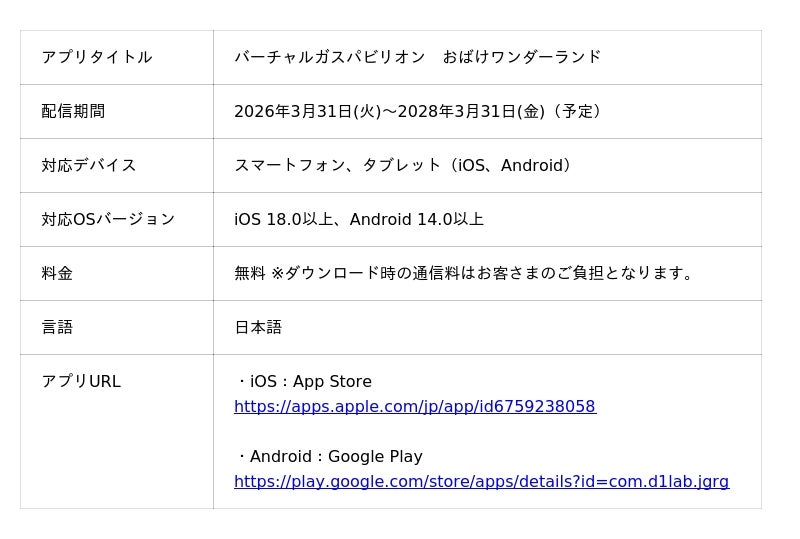 システムの企画・開発、CGコンテンツ制作、モーションキャプチャスタジオ運営事業などを手掛ける株式会社D1-Lab(本社:東京都港区、代表取締役:北 祐一、以下「D1-Lab」)は、一般社団法人日本ガス協会が提供するアプリ「バーチャルガスパビリオン おばけワンダーランド」の開発を担当しました。