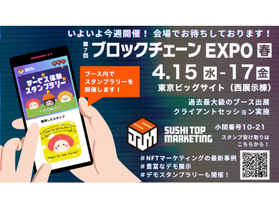 SUSHI TOP MARKETING株式会社(本社:東京都千代田区、代表取締役CEO:徳永大輔、以下 「当社」)では、この「 第7回 ブロックチェーン EXPO 春」にて過去最大級のブースで出展いたします。