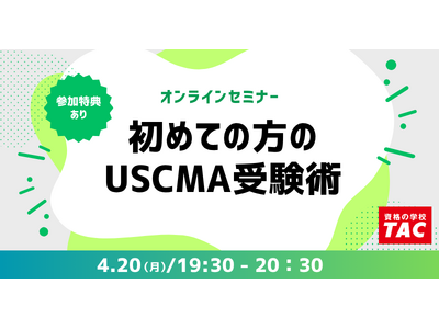 TAC株式会社(東京都千代田区)は、英語&日本語受験が選べることで注目が集まっているUSCMA試験の魅力や受験方法について4/20(月)にオンラインセミナーでご紹介いたします。