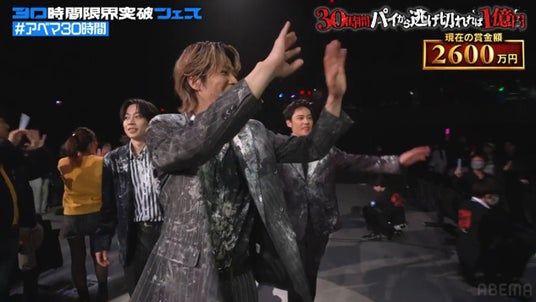 新しい未来のテレビ「ABEMA(アベマ)」は、2026年4月11日(土)に開局10周年を迎えます。「ABEMA」10周年を記念し、4月11日(土)午後3時から12日(日)夜10時にわたり、特別番組『30時間限界突破フェス』を生放送。『30時間限界突破フェス』内の通し企画として、特別チャンネル「30時間限界突破フェス2 コムドットch」にて『コムドット 30時間パイから逃げ切れれば1億円!』を4月11日(土)午後6時20分より生放送しました。