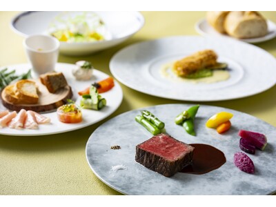 最上階のフランス料理 ボーセジュール(38F)では、滋賀県のワイナリーと7つのホテルのソムリエが共同開発したワイン「浅柄野Minori」を料理に取り入れ近江牛とのマリアージュが楽しめるコース料理を提供。滋賀の恵みとワインの魅力をご堪能いただけます。ブッフェレストランのレイクビューダイニング ビオナ(37F)では、近江牛をはじめ、近江鶏、藏尾ポークの滋賀を代表する3種のお肉を使った料理を食べ放題でご用意。また、日本料理・中国料理の各レストランにおいても、近江牛のきめ細やかな肉質と豊かな風味を活かした一品をお楽しみいただけます。みずみずしい旬の食材や滋賀県産の恵みを取り入れ、初夏らしい爽やかさと彩りを感じられる料理に仕上げた滋味深い味わいを、大切な方とのひとときにゆったりとお楽しみいただけます。