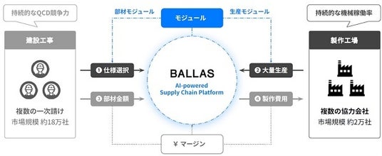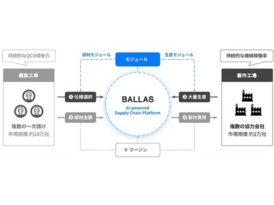 こうした環境の中、BALLASは「建設業を最適化し、人々を幸せに。」というミッションのもと、建設業に製造業の考え方を導入し、建設部材の設計・調達プラットフォームを提供することで、建設現場と製作工場間におけるサプライチェーンの最適化を目指します。