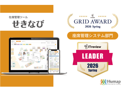 株式会社アスマーク(本社:東京都渋谷区、代表取締役:町田 正一)の従業員総活躍サービス「Humap(ヒューマップ)」が提供する、在席・座席管理ツール『せきなび』は、アイティクラウド株式会社(本社:東京都港区、代表取締役社長:黒野 源太)が運営するIT製品比較サイト「ITreview(アイティレビュー)」において、2026年4月に発表された「ITreview Grid Award 2026 Spring」の座席管理システム部門で、最高位である「Leader」を初めて受賞いたしました。