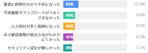 最も多いつまずきポイントは「審査に時間がかかり不安になった」で(63名、12.4%)です。これは技術的な問題というより、心理的な不安に関連するものといえます。