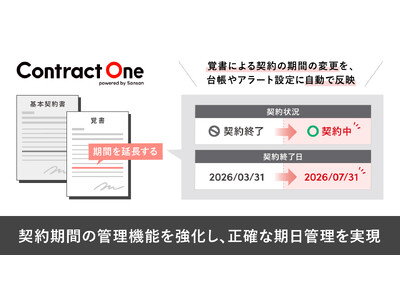 働き方を変えるAXサービスを提供するSansan株式会社は、取引管理サービス「Contract One(コントラクトワン)」において、契約期間の管理機能を強化しました。