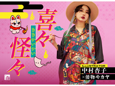 和雑貨ブランド「倭物や カヤ(わものや かや)」と、ネオレトロポップな世界観で人気のイラストレーター・中村杏子(なかむら きょうこ)氏がコラボレーション。妖怪たちを福招きのモチーフとして描き起こしたコレクション「喜々怪々(ききかいかい)」が、描き下ろし新柄2点を加えた第2弾として、2026年4月中旬より順次発売いたします。