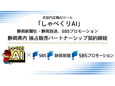 株式会社ディー・エル・イー(本社:東京都千代田区、代表取締役社長CEO・CCO:小野亮、以下「DLE」)は、当社が提供する次世代広報AIツール「しゃべくりAI」において、同サービスのセールスを担うグループ会社・株式会社キャビア(本社:東京都千代田区、代表取締役:葉建漢)を通じ、株式会社静岡新聞社・静岡放送株式会社、株式会社SBSプロモーション(以下、総称して「SBSグループ」)と、静岡県内における独占販売権パートナーとしての業務提携を締結したことをお知らせいたします。