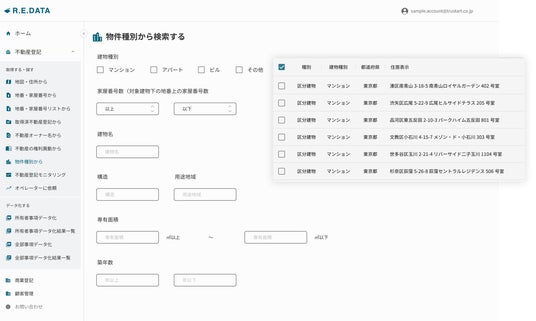 「R.E.DATA」は継続的な機能拡充を進めており、4月1日から全国の法務局から収集し独自解析した商業・法人登記受付帳をもとに、企業の設立や役員変更、本店移転、解散、増資・減資といった法人データの提供を開始しました。不動産データと法人の登記変動データを掛け合わせることで、「今まさに拠点移転を検討している企業」や「増資直後で投資余力が高まっている企業」を特定し、タイミングを逃さない提案が可能になります。