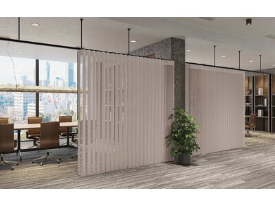 働き方の多様化によりハイブリッドワークが普及する中、オフィスには業務内容や利用シーン、人数・用途の変動に応じた柔軟なゾーニングが求められています。加えて、空間を分断せずにつながりを保ちながら、音や視線を適度にコントロールできる、ゆるやかな間仕切りへの関心も高まっています。こうした背景を踏まえ、さまざまなシーンに対応可能なカーテンレールへとリニューアルします。