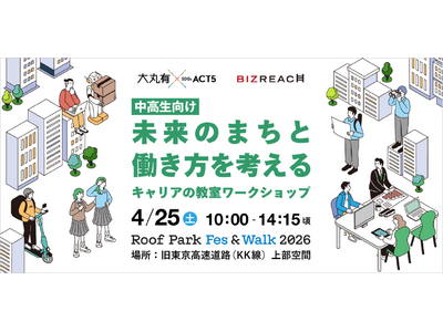Roof Park Fes & Walk 2026」(主催:東京都、東京高速道路株式会社)において、株式会社ビズリーチと共催で、中高生向け特別ワークショップ「未来のまちと働き方を考える-キャリアの教室-」を4月25日に実施します。高速道路としての役割を終え、新たな都市空間へと生まれ変わる旧東京高速道路(KK線)を舞台に、ACT5のテーマの一つである「ひとと社会のWELL」のもと、新たな働き方や生き方を考える実践の場として、まちづくりに関わっている方や多様な分野で働く大人との対話を通じて、「未来のまち」と「自分自身のキャリア」について考える機会を提供します。