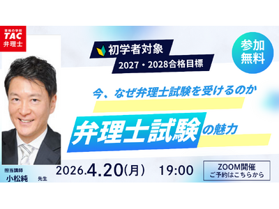 弁理士試験対策講座を展開しているTAC株式会社(東京都千代田区)は、来年度・再来年度の弁理士試験合格を目指す方を対象とした無料オンラインセミナーを、4/20(月) に開催いたします。