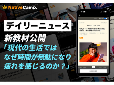 レッスン回数無制限のオンライン英会話サービス「ネイティブキャンプ英会話」を展開する株式会社ネイティブキャンプ(東京都渋谷区 代表取締役:谷川国洋)は、オリジナル教材「デイリーニュース」において、現代人が感じる“時間の浪費”や“精神的疲労”の原因をテーマにした新教材を公開したことをお知らせいたします。