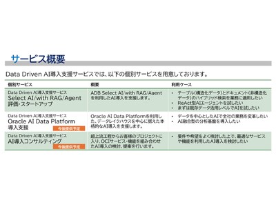 図:「Data Driven AI導入支援サービス」個別サービス概要